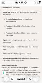 Collana nuova acquistata per errore 18/03/2026 interamente in argento 925 con placcatura in oro 18 kt , pagata 155€ vendo a meno perchè l' avevo ordinata color oro rosa misura 50 cm .