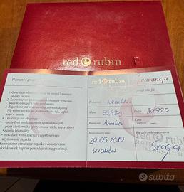 Vendo collana in argento 925 con tre grandi pezzi ovali d’ambra (misurano 3 cm in lunghezza e 2 in larghezza), come da foto. Acquistata nel 2000 in un’oreficeria a Cracovia, con certificato di garanzia. Portata un paio di volte da mia moglie e poi messa via in quanto non di suo gusto. Peso 55,93 grammi