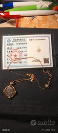 collana in argento con ciondolo in oro 18 k con garanzia..un vero affare per chi la prende.nel ciondolo c'e' incastonata una moneta antica in argento della dea Athena,e nell' altro lato un gufo,simbolo della saggezza della Grecia.