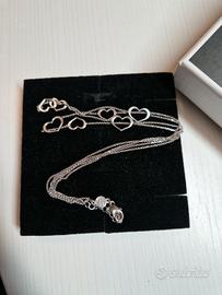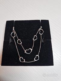 Vendo collana Nomination della collezione Unica. Si tratta di una collana doppia realizzata in argento 925, caratterizzata da diversi ciondoli a forma di cuore traforato distribuiti lungo le catene.