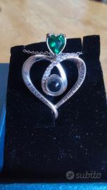 ❤️ ciondolo a forma di cuore in argento sterling con pietra colore smeraldo.