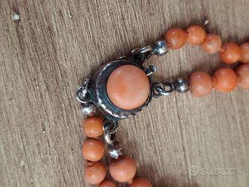 collana in corallo in doppio filo di varie gradazioni proveniente dai fondali del mare della Sicilia, con susta in argento
