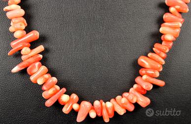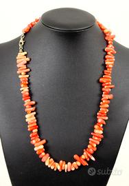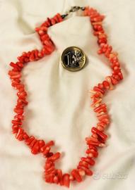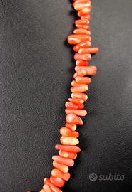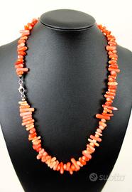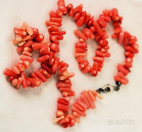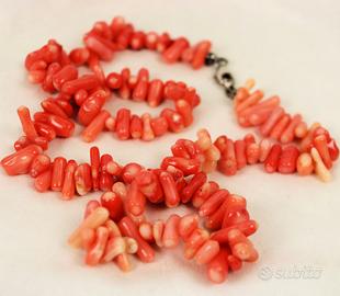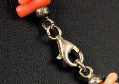 Originale collana di corallo rosso/rosa naturale striato con passante in argento 925.