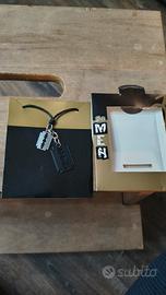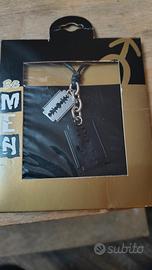 collana da uomo della Be man come da foto in cuoio con ciondolo con doppia lametta in acciaio ,in confezione originale