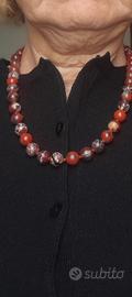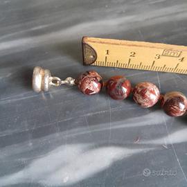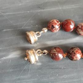 Collana in diaspro naturale rosso scuro tendente al marrone. Lunghezza circa 50 cm. Diametro di ogni boule circa 1 cm. Chiusura a barilotto con incastro, leggermente scolorita come da foto. Peso della collana 69 gr.