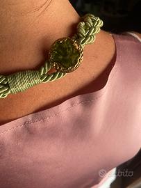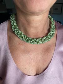 Bella collana in macramè verde acqua , usata due volte ,bellissimo gancio posteriore. Nom presenta danni