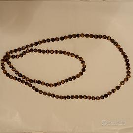 Lunghezza cm 126 e diametro delle sfere in occhio di tigre mm. 10.