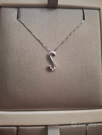 collana in oro bianco 18kt con iniziale S e incastonati 2 diamantini taglio brillante. gr 1.35. ritiro solo in negozio presso compro oro misurata viale misurata,19 Milano