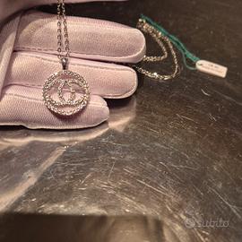 Catena oro bianco 750/18K con pendente doppia Cc cerchiato pave'di zirconite grande piu' o meno 2.2cm di diametro.