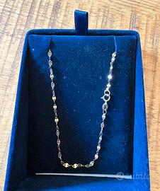Collana modello specchiato in oro 750 nuova con scatola e certificato, Mi è stata regalata e mai indossata Peso 1,08 gr Lunghezza 45 cm