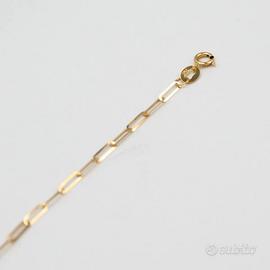 Collana in oro giallo 18 kt grammi 1,2 lungo cm. 42 +2. Molto particolare nella lavorazione presenta al centro una maglia a cordoncino ritorto interrotto da 4 palline in oro. Prodotto made in Italy munito di marchio di fabbrica come da legge e completo di confezione e certificato di qualità rilasciato dalla Gioielleria.