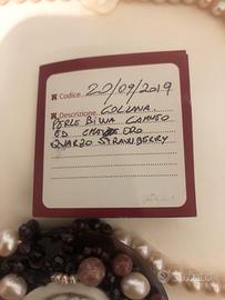 collana in perle biwa con cammeo quarzo strawberry. usata poche volte, in condizioni perfette
