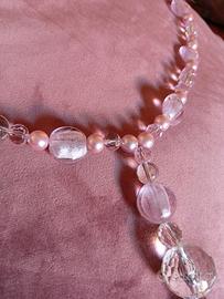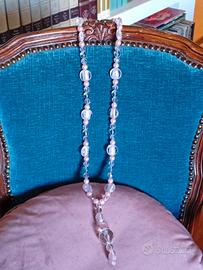 Collana lunga in perle di vetro di murano rotonde e ovali alternate a perle rosa.