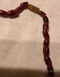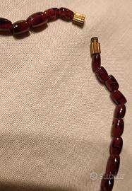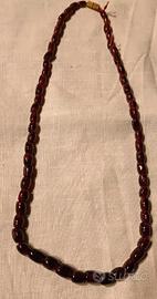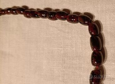 COLLANA in PIETRA DURA VERO GRANATO COLOR VINACCIO PIETRE OVOIDALI DECRESCENTI 60 PIETRE INFILATA CON SOLO FILO COTONE LUNGHEZZA 45 CM