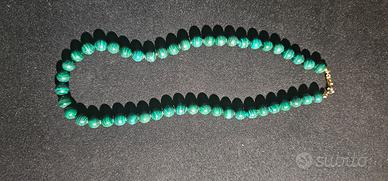 Collana in malachite naturale, composta da perle rotonde da 8 mm con le tipiche venature verdi della pietra.