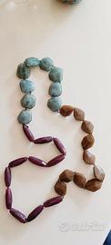 La sua tonalità la valorizza sia su abiti di colore caldo che freddo. La particolare resina offre al monile una piacevole leggerezza in rapporto alle sue dimensioni. È lunga 63 cm