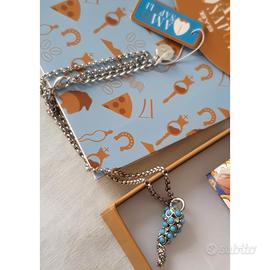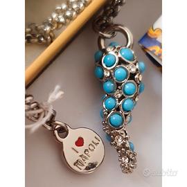 Fantastica collana Io Amo Napoli (collezione By Simon) con charm corno Portafortuna con zirconi, colori di Napoli. La collana è regolabile con diversi anelli alla catena. Nuovisdima, CARTELLINO, CONFEZIONE, CERTIFICATO DI QUALITÀ, BUSTA REGALO, TUTTO FIRMATO AMO NAPOLI. Già pronto per un eventuale regalo. Nel mio armadio altri gioielli e abiti bellissimi. Un armadio molto grande da scorrere per scoprire anche vere meraviglie.