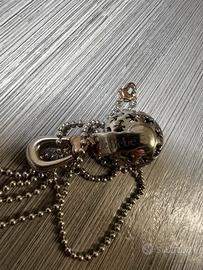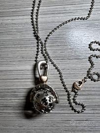 Ciondolo in argento 925 con cuoricino placcato in oro rosa a contrasto. La catena in argento è regolabile da 100 cm a 90 cm con moschettone a forma di cuore in argento placcato in oro rosa. È un chiama angeli che protegge mamma e bimbo nei nove mesi più importanti da vivere insieme.