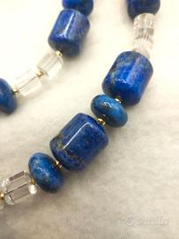 Dedicandola a tutte coloro fedeli al classico BLU, propongo questa splendida collana che esalta , nella sua semplicità, la bellezza di un pregiato Lapislazzuli dalle differenti forme e tonalità, alternato ad elementi di Cristallo di rocca che donano leggerezza e luminosità. Cm. 60 + 10 catenella acciaio dorato inalterabile. Perfetta in tutte le stagioni e senza tempo anche questa creazione è un pezzo UNICO, non replicabile.