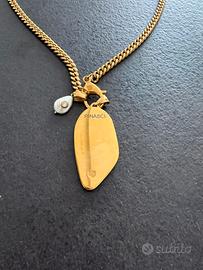 Catena: La catena nell'immagine è a maglia groumette (curb chain) dorata, tipica dello stile vintage e contemporaneo del brand.