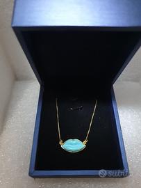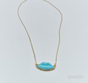 Collana argento 925 placcato oro 18 kt con turchese forma labbra.