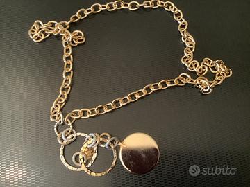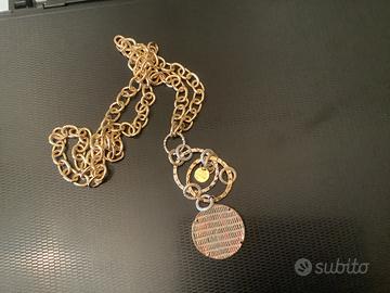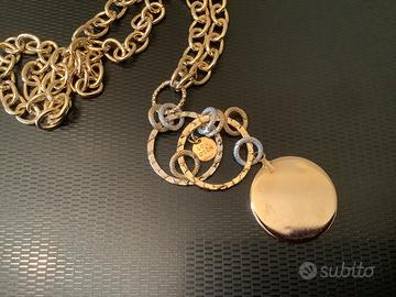 Collana a catena barbazzale con ciondolo. Logo inciso. Color oro. Lunghezza cm 47, peso 40 grammi