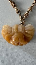 Pendente in pietra intagliata color miele. Pietra non certificata: possibile onice commerciale/calcite.
