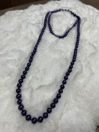 Elegante collana lunga composta da sfere lucide color viola scuro/prugna con raffinato effetto perlato. Il design lineare e minimal la rende un accessorio versatile, perfetto sia per look casual che più eleganti. Caratteristiche: