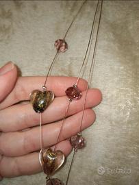 Collana handmade, con 3 fili in metallo sottile, che risulta un po' annerito per il tempo, ma non si nota tanto, e con una lucidata penso vada via.