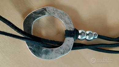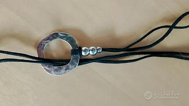 PREZZO FISSO. No Tuttosubito Invio Posta1 3€ 🎁 Idea regalo, elegante e originale ✨ Collana lunga stile boho/chic 🖤 Cordino nero effetto suede ⚪ Anello centrale in metallo lavorato martellato, come i due pendagli 🔗 Dettagli con perline color argento 📏 Lunghezza regolabile (vedi foto con misure) 👗 Perfetta su maglioni, abiti o camicie, vestiti Boho chic in estate in link, cotone sul bianco 🆕 Nuova, mai indossata 🎁 Ottima come regalo o per arricchire il tuo outfit
