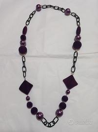 Collana lunga + bracciale fatta con palline viola e lilla,con catena nera. lunghezza 90 cm