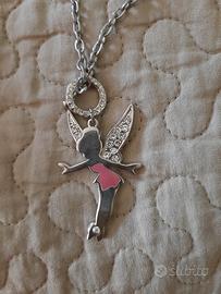 Collana lunga con ciondolo grande raffigurante Trilly della favola di Peter Pan con vestito rosa e piccoli swarovsky vendo a euro 5 visione e ritiro roma nord