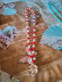 Collana lunga di perle rosse e bianche con ciondolo fiore molto delicata perfetta per il periodo estivo