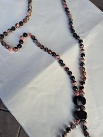 Collana lunga di pietre vere agata di fuoco e onice nero. Lunghezza 54 cm
