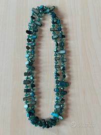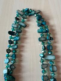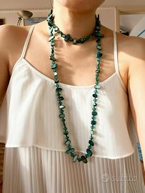 Collana lunga elegante a doppio filo con perline decorative verdi e cristalli. Design versatile: può essere indossata lunga oppure avvolta due volte per un look più corto e moderno. Perfetta per outfit casual o eleganti. Condizioni: ottime, pulita e pronta all’uso. Materiale: perline decorative e cristalli sintetici. Colore: verde / verde smeraldo. #collana #collanalunga #collanaverde #collanaelegante #collanadoppiofilo #accessoridonna #bijoux