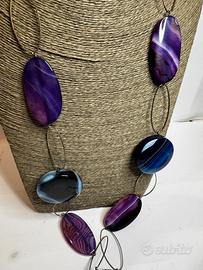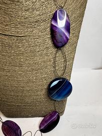 Le pietre presentano bellissime striature e tonalità viola, blu e nero. pietra fredda al tatto. Montatura in metallo brunito. Senza chiusura, si indossa a infilo. Ottime condizioni, ideale come regalo o per amanti dello stile boho-chic.
