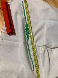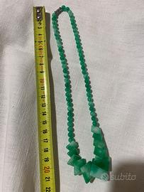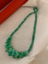 Cillana in pietre naturali di Giada Con perle tondeggianti e piastrine centrali sfaccettate di forma romboidale Bel verde lucente e screziato Completa si scatolina regalo rossa