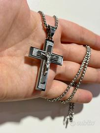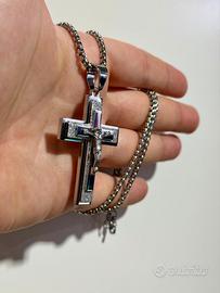Elegante collana con pendente a forma di croce di Gesù e maglia veneziana.