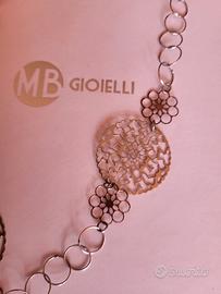 Il design presenta elementi a disco traforato con motivo floreale e maglie ad anelli. Il brand MB Gioielli è noto per i suoi gioielli artigianali e di design.