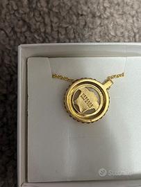- Ciondolo rotondo dorato con il motivo Medusa.