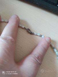 Collana vintage in vere perle di fiume naturali, con ciondolo in argento, struttura e gancio che mantiene il ciondolo.