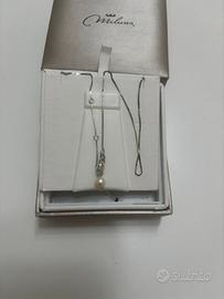 Collana Miluna con perla color corallo rosso e chisura con perlina bianca. Mai indossata