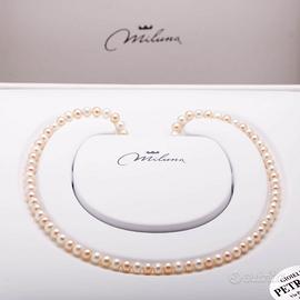 Condizione :Rigenerato Gemma :Perle bianche e golden Brand :Miluna Materiale :Oro bianco 18 kt Misura :Lunghezza 48cm Peso :17,13gr Scatola :Miluna Cod: 6140-a
