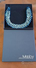 Bellissima collana in acciaio con pietre blu Marca: Mooby Misura 35 + 10 cm Nuova mai indossata, con scatola regalo