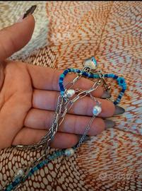 Collana multistrato con dettagli in perle e un ciondolo a forma di cuore.