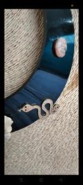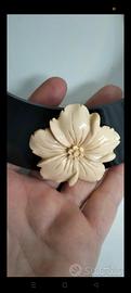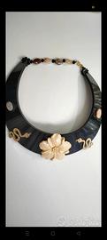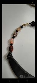 collana rigida nera con agata marrone ,fiore in pasta di corallo, serpenti in Zama e chiusura in argento 925 placcato oro. Mai indossata