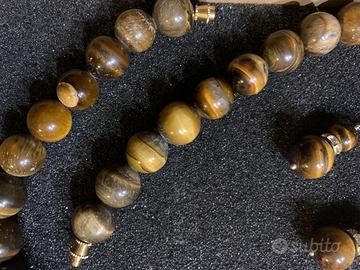 Collana occhi di tigre naturali, cm. 50, con orecchini abbinati. Nuova, integra, mai messa.