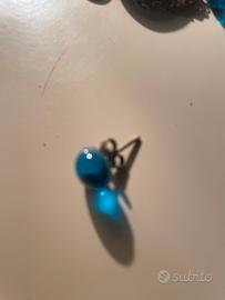Collana con ciondolo color oro con disco blu ,e due orecchini azzurri