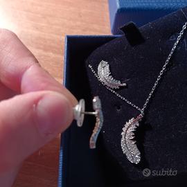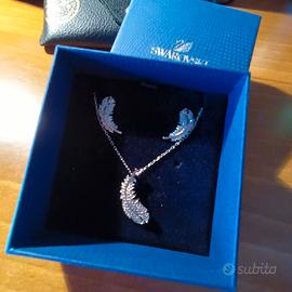 Collana e orecchini marca Swarovski a forma di piuma . Nuovi con scatola originale. Orecchini piuma chiusura con perno. Prezzo scontato