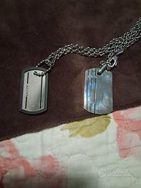 Materiale: Acciaio Inossidabile. Design: Doppia piastrina. Una piastrina spazzolata/satinata con inserto nero e una con un sottile bordo nero. Lunghezza Totale: 35 cm Condizioni: Usata, e ben tenuta. Presenta qualche normale micro-imperfezione/segno d'uso sull'acciaio lucido, ma è in ottime condizioni generali e pronta da indossare. Non ho più la scatola originale. Categoria Collane > Brand Fossil > Condizioni Ottime > |||